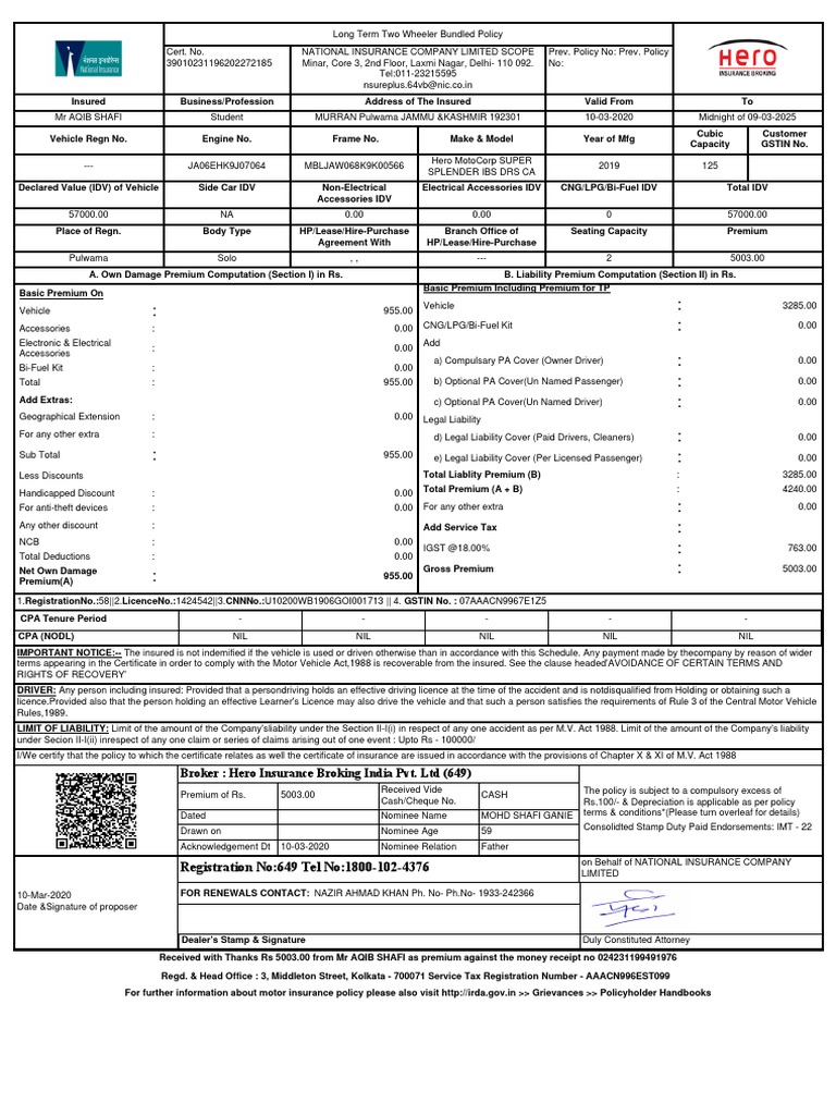 National Two Wheeler Insurance Renew Insurance Policy Online